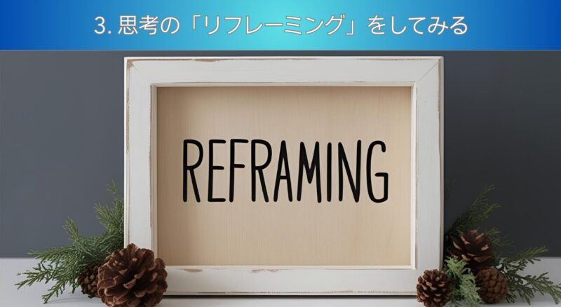 → 頭の中のもやもやを外に出すことで、冷静な視点が戻ってくる - 思考の「リフレーミング」をしてみる